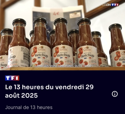 Notre sauce façon ketchup fait parler de nous ! La Provence : "Depuis février 2025, le groupe CAPL commercialise un ketchup à base de sucre de raisin. Une manière d’offrir d’autres débouchés que le vin à un secteur qui souffre d’une surproduction structurelle. "On n’aurait jamais pensé qu’un jour on ferait du ketchup !" Les yeux rivés sur une bouteille élancée remplie d’un liquide écarlate, Laurent Boyle, viticulteur à Sablet depuis une trentaine d’années, n’en revient toujours pas. Pourtant, c’est bel et bien avec un peu de son raisin qu’a été conçu ce condiment d’un nouveau genre, qui utilise le sucre naturel du fruit en lieu et place du glucose habituellement ajouté dans les préparations industrielles.